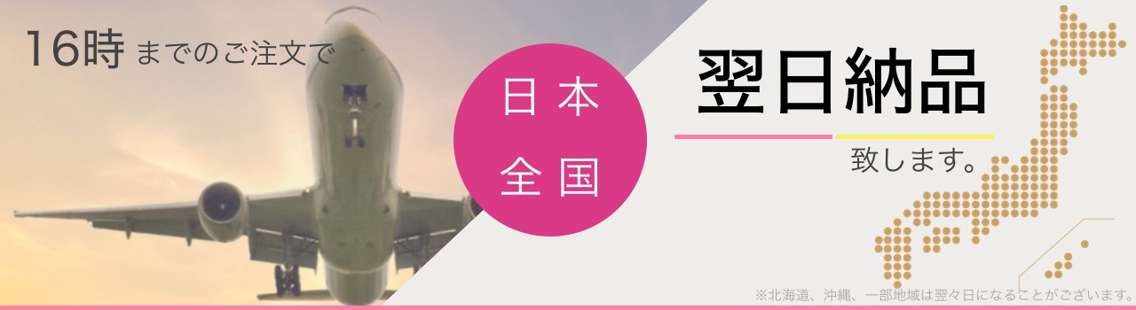 翌日配送はもとより、当日配送も地域限定で行っております。 翌日配送に関しては、ほぼ全国17時まで受付可能。 ※九州地区に関しては20時まで受付可能です。